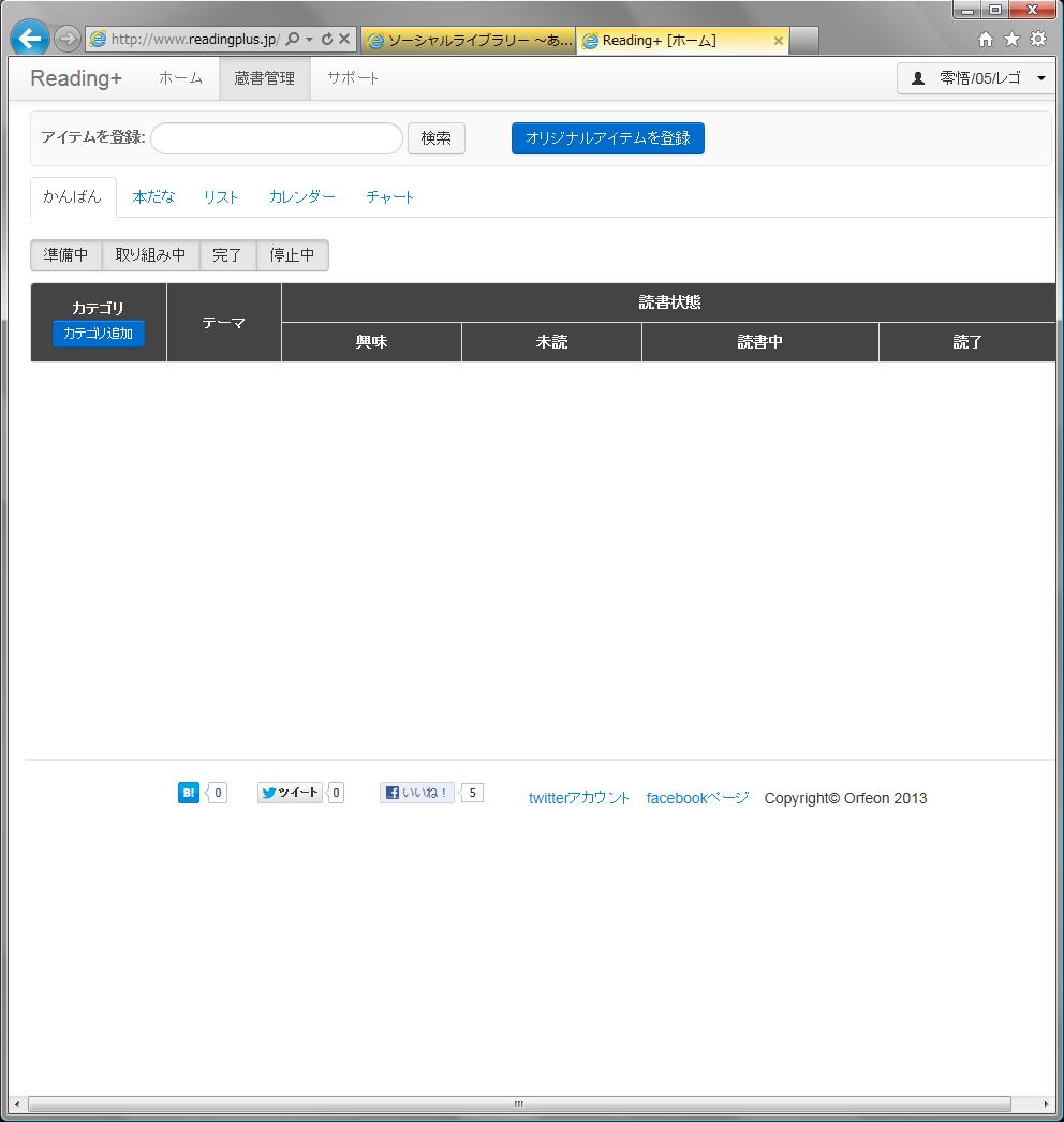 準備中/取り組み中/完了/停止中 があって、カテゴリー毎に選ぶようになっているがどういう使い方をイメージして使われているのかよくわからない。テーマができたのはいいと思うがSFとかミステリとか分ければいいのだろうか。もはや自分がイメージする使い方が、製作者の方と一致しているのかどうかもよくわからない。