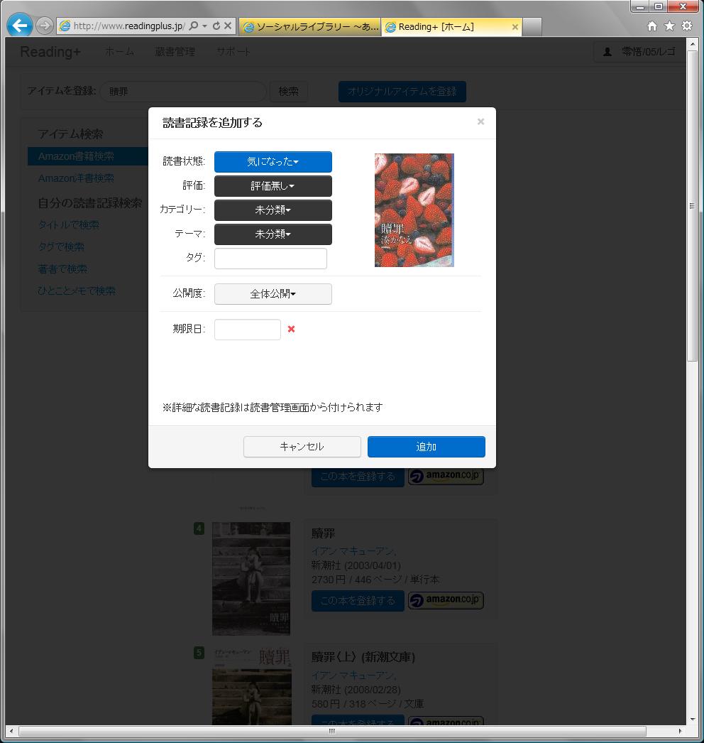 細かく使ったわけではないがiPhoneのサファリからも覗けそうなので、とりあえず読みたい本だけ「気になった」の項に入れておこうかな、と思っている。今後はアプリも作ってくれるんだろうか。期待したい。