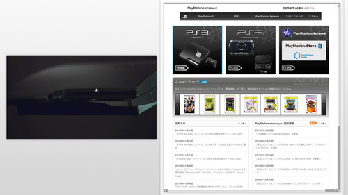これは、PS3用のtorneという地デジチューナーキットでの画面。わかりにくいけれど左がTV画面(せめて自社CMとか、TVとしてわかる画像を使えんかったのか…)右がWEB画面。