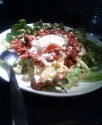 easeというお店で半熟卵のタコライス(写真)を注文。沖縄料理だそうな。東京来て沖縄料理もどうかと思うが(汗)。まぁスタバで食べるよりよかろう(汗)。